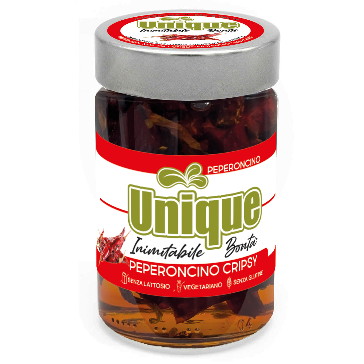 Il Peperoncino Crispy è un gradevole condimento piccante croccante, ideale sia come contorno, sia come condimento per primi, tacos, hamburger, per accompagnare crostini, bruschette, e piatti freddi. Un condimento davvero appetitoso ed adatto a qualsiasi menù.