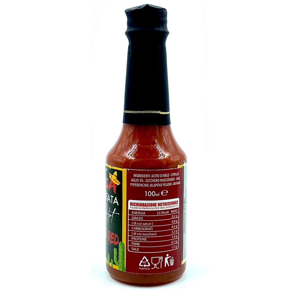 SALSA FERMENTATA al peperoncino JALAPENO RED. Cos’è la fermentazione? È un processo biochimico che serve a spiegare le trasformazioni alimentari di alcuni microrganismi. I fermenti non sono altro che batteri e lieviti che sfruttano le sostanze contenute negli alimenti per vivere e, in questo modo, li modificano. In primis il gusto. La fermentazione infatti ne aumenta la complessità. Non solo, grazie a questo processo si modificano infatti anche i contenuti nutrizionali. I cibi fermentati risultano infatti più digeribili e salutari, visto che producono numerose sostanze utili per la salute. I cibi fermentati non sono eterni, ma possono essere conservati in frigorifero o in dispensa per mesi. Perché? Semplice, la fermentazione rende l’ambiente costituito dal cibo del tutto inospitale per microrganismi patogeni e funghi. A seconda del tipo di fermentazione (alcolica o lattica) e della quantità di sale impiegata, variano i tempi e i luoghi di conservazione. Questa salsa è stata lasciata in fermento 12 mesi. Sapori e profumi vi delizieranno il vostro palato.