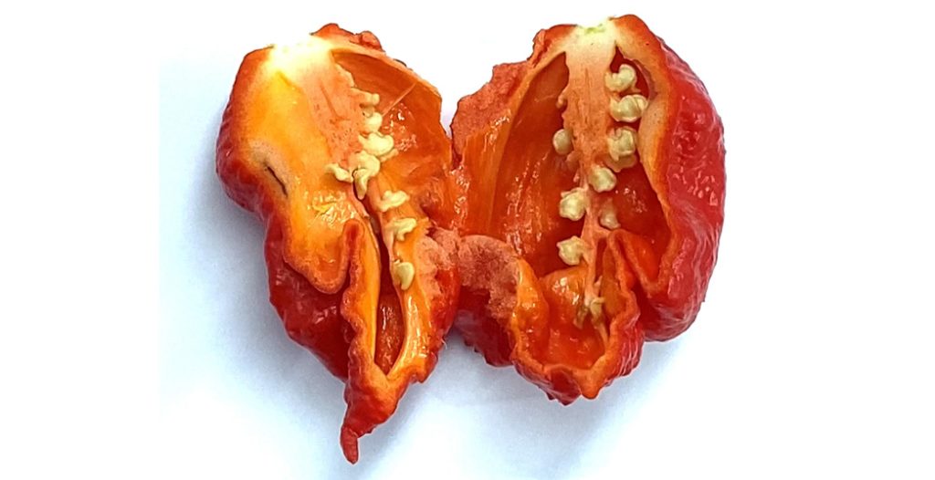 La pianta può arrivare ad un’altezza di 1,21 metri e la colorazione dei frutti inizia dal verde quando sono immaturi, fino ad arrivare al colore marrone, che indica la maturazione finale. Questi peperoncini sono una sfida per il palato di chiunque, è un peperoncino incredibilmente rugoso e piccante varianti che arrivano a 1,500.000 SHU.