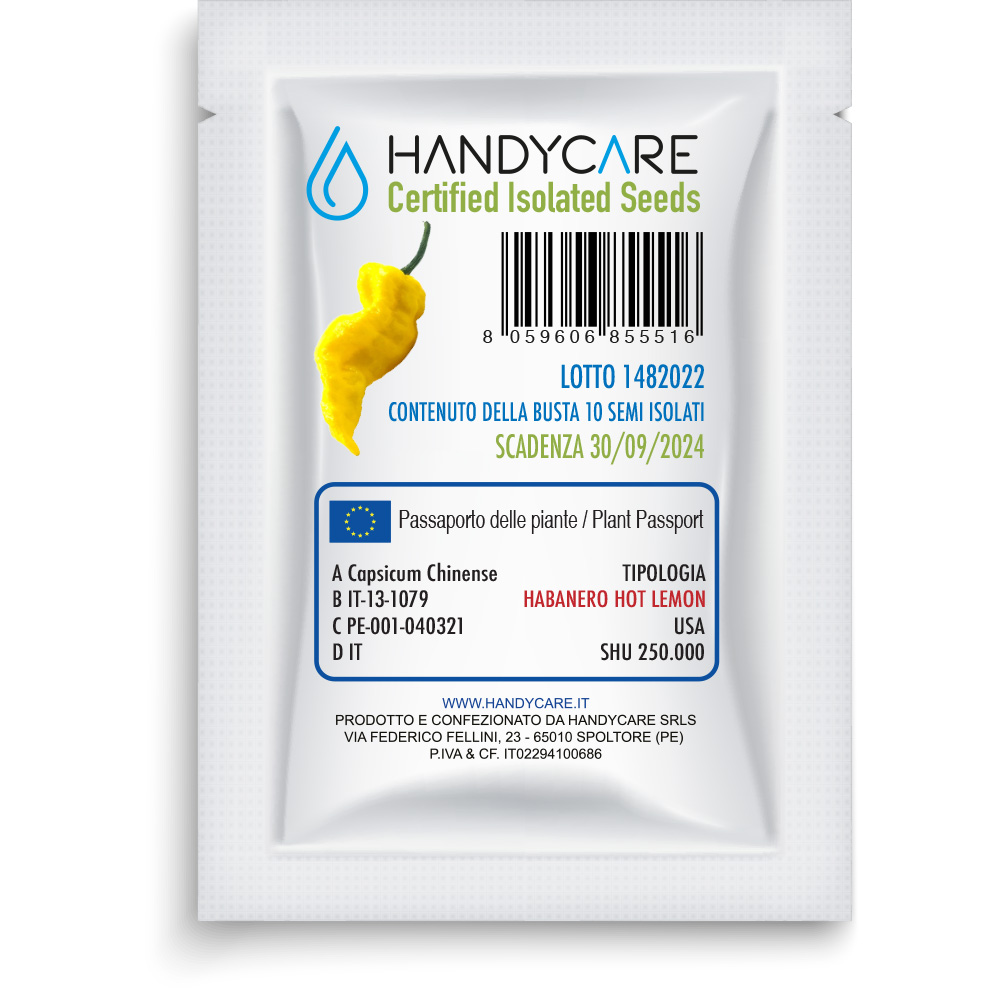 Il peperoncino HABANERO HOT LEMON è un peperoncino della specie del Capsicum Chinense. Il fiore ha un aspetto classico per la specie, la corolla bianco-verdognola, le antere grigio/biancastre che racchiudono una buona quantità di polline.