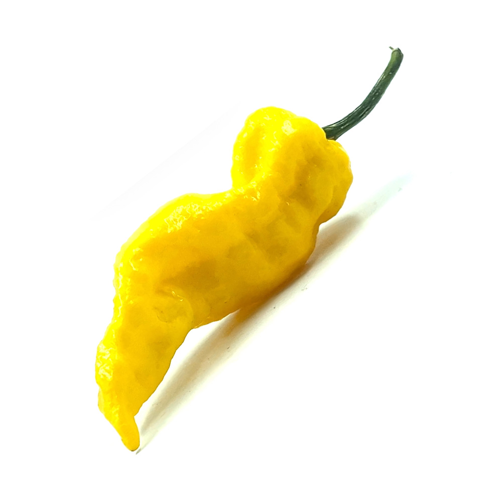 I frutti si presentano di due forme leggermente differenti, una più tondeggiante ed una più affusolata, di colore verde scuro da immaturi, a giallo “vivo” una volta maturi. Il frutto misura una dimensione di 5/6cm di lunghezza e 3 di diametro. l’aroma è molto forte. Subito dopo aver aperto a metà il frutto, si viene investiti dall’odore classico di chinense fresco, intenso e dolciastro. Il frutto ha una discreta quantità di placenta di colore bianco, molto spugnosa. È presente una buona quantità di “olio” al suo interno.