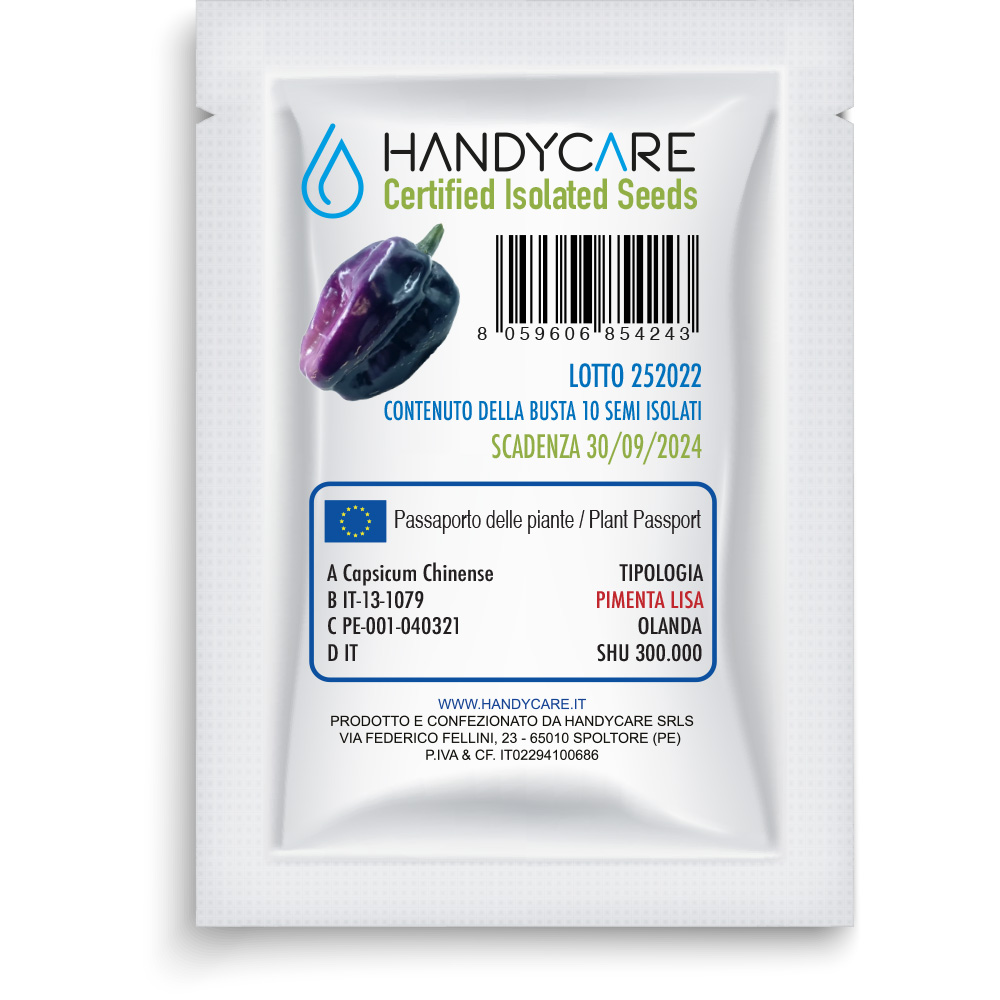 Il peperoncino PIMENTA LISA è un peperoncino della specie del Capsicum Chinense, Il peperoncino Pimenta Lisa nato da un’ibridazione stabile di un Pimenta da Neyde x Habanero White. La pianta si presenta scura e produce frutti dalle molteplici sfumature che variano dal verde al viola scuro con sfumature viola chiaro a maturazione finale, di alta piccantezza. SHU 300.000