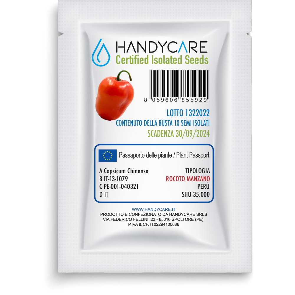 Il peperoncino ROCOTO MANZANO è un peperoncino appartenente alla famiglia dei Capsicum Pubescens. Varietà di Rocoto “Manzano” (ovvero a forma di mela) molto grande e con piccantezza elevata per essere un Rocoto. Ideale per cucinare la famosa ricetta di “Rocoto Relleno” (Rocoto ripieno tipico del Peru’) per chi ama il piccante piuttosto deciso. Specie a 24 cromosomi.
