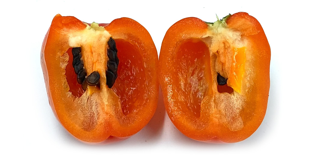 Il frutto ha le pareti molto spesse e piuttosto soffici (è “polposo” direi), caratteristica anche questa piuttosto comune fra i rocoto.